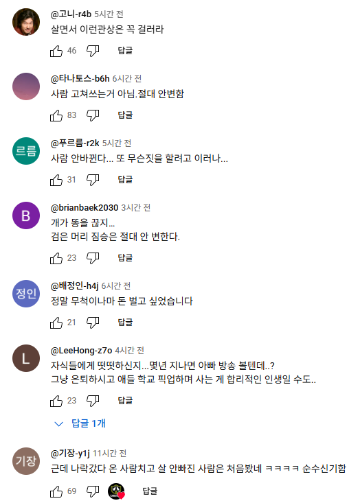 - “개가 똥을 끊지… 검은 머리 짐승은 절대 안 변한다”